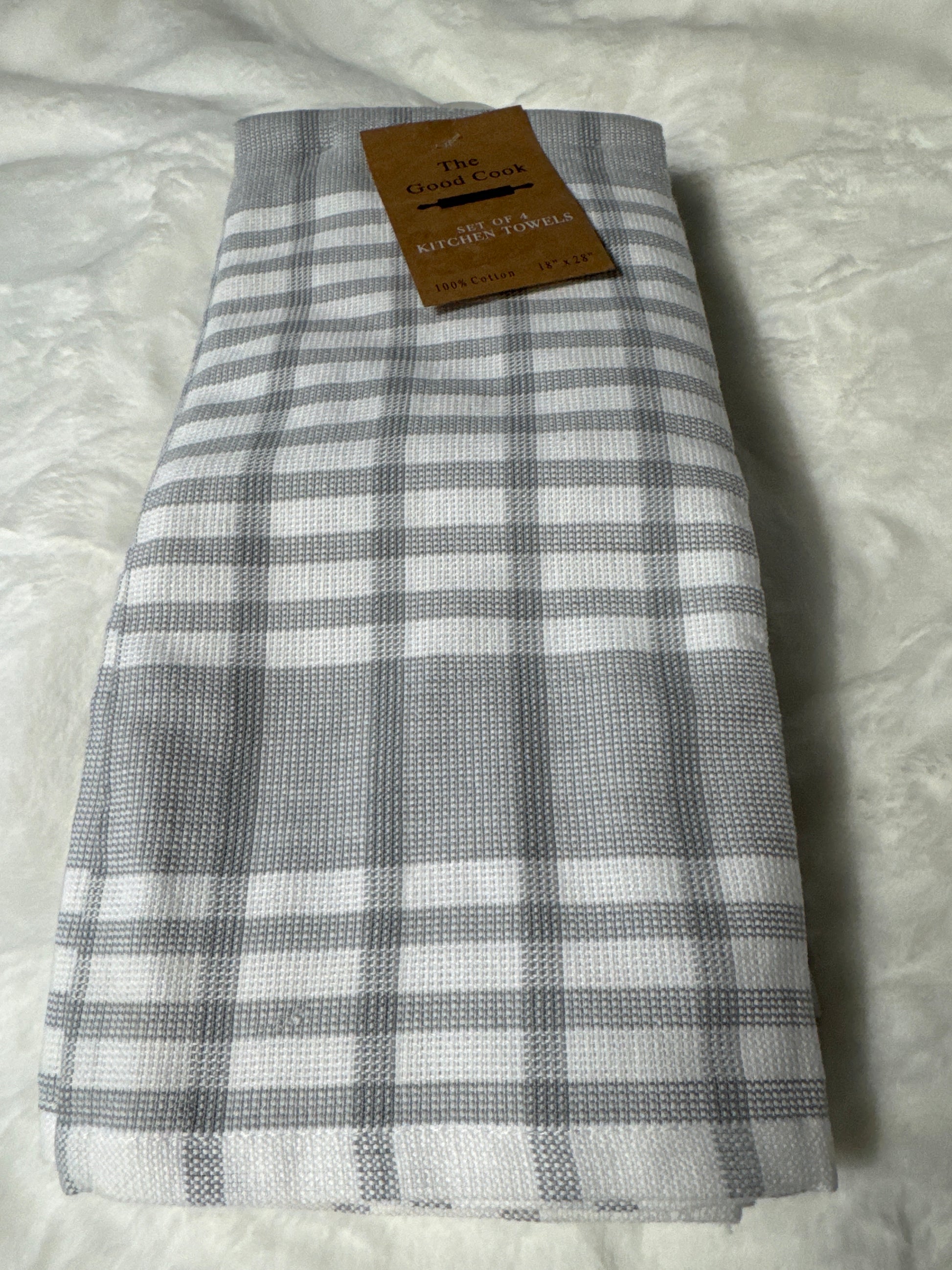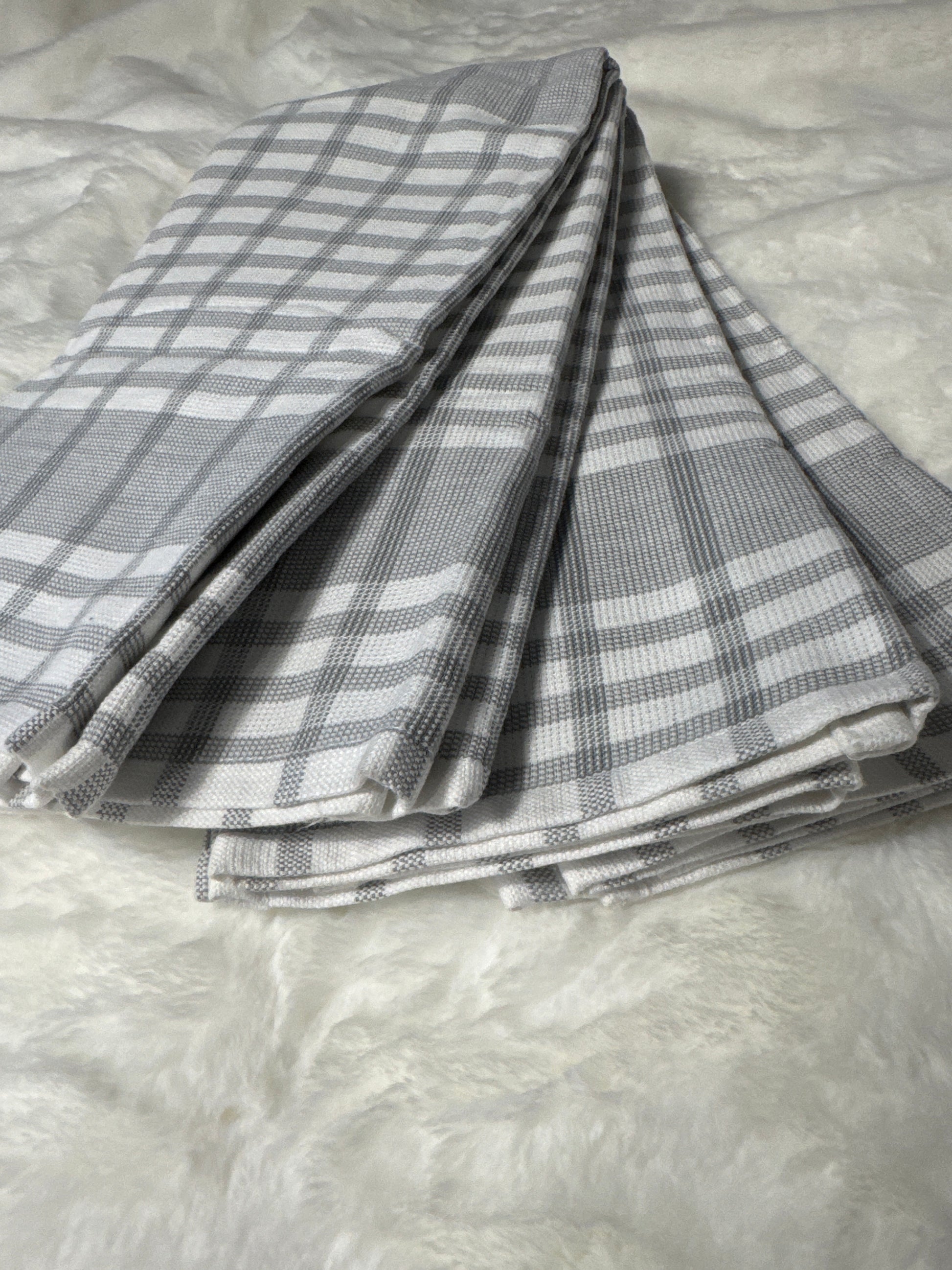 Set of 4 Kitchen Towels | 100% Cotton, Durable & Absorbent | 18" x 28" grey white