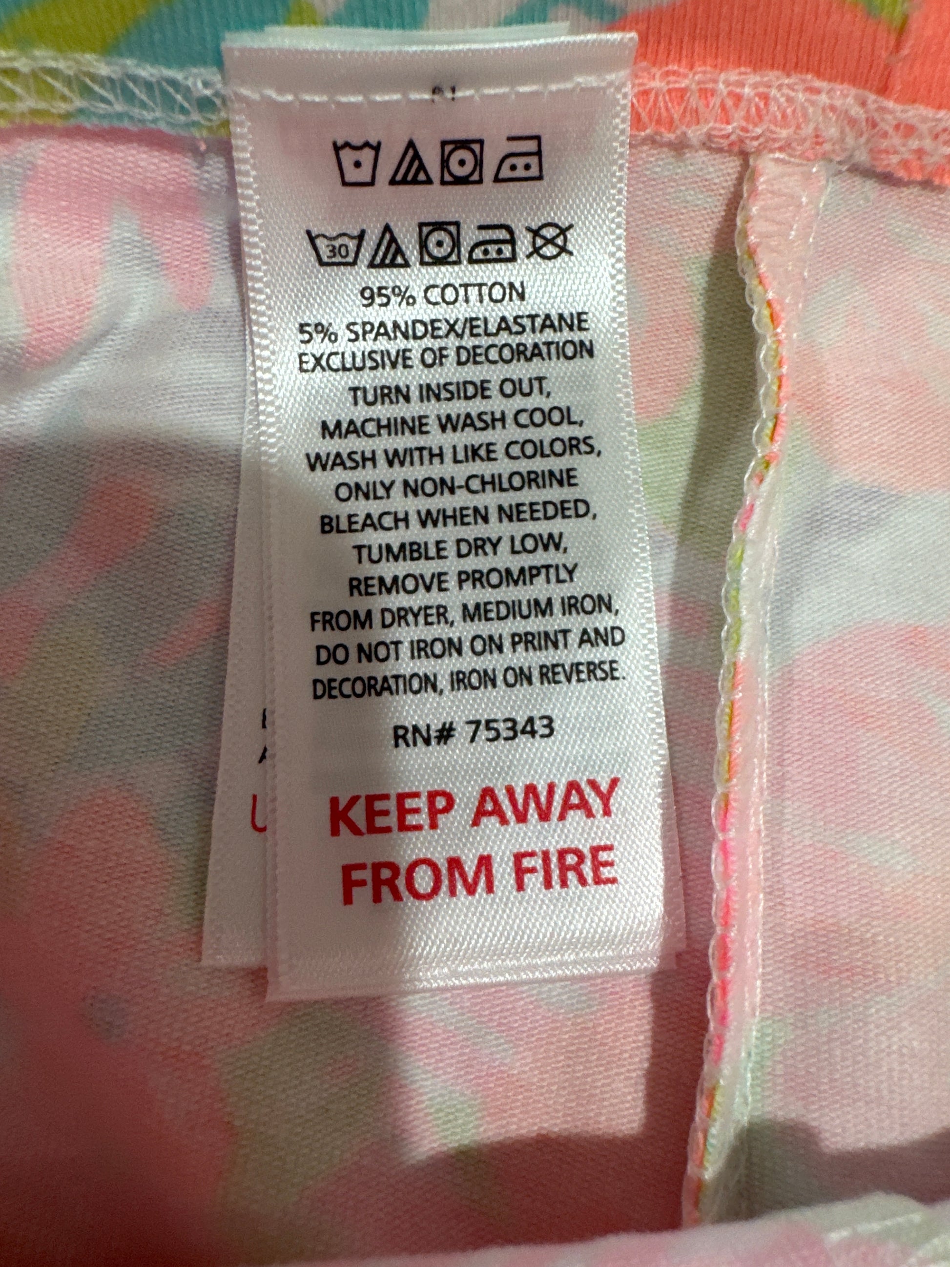 - Features: Pull-on elastic waistband, soft stretch fabric, bright tropical leaf pattern