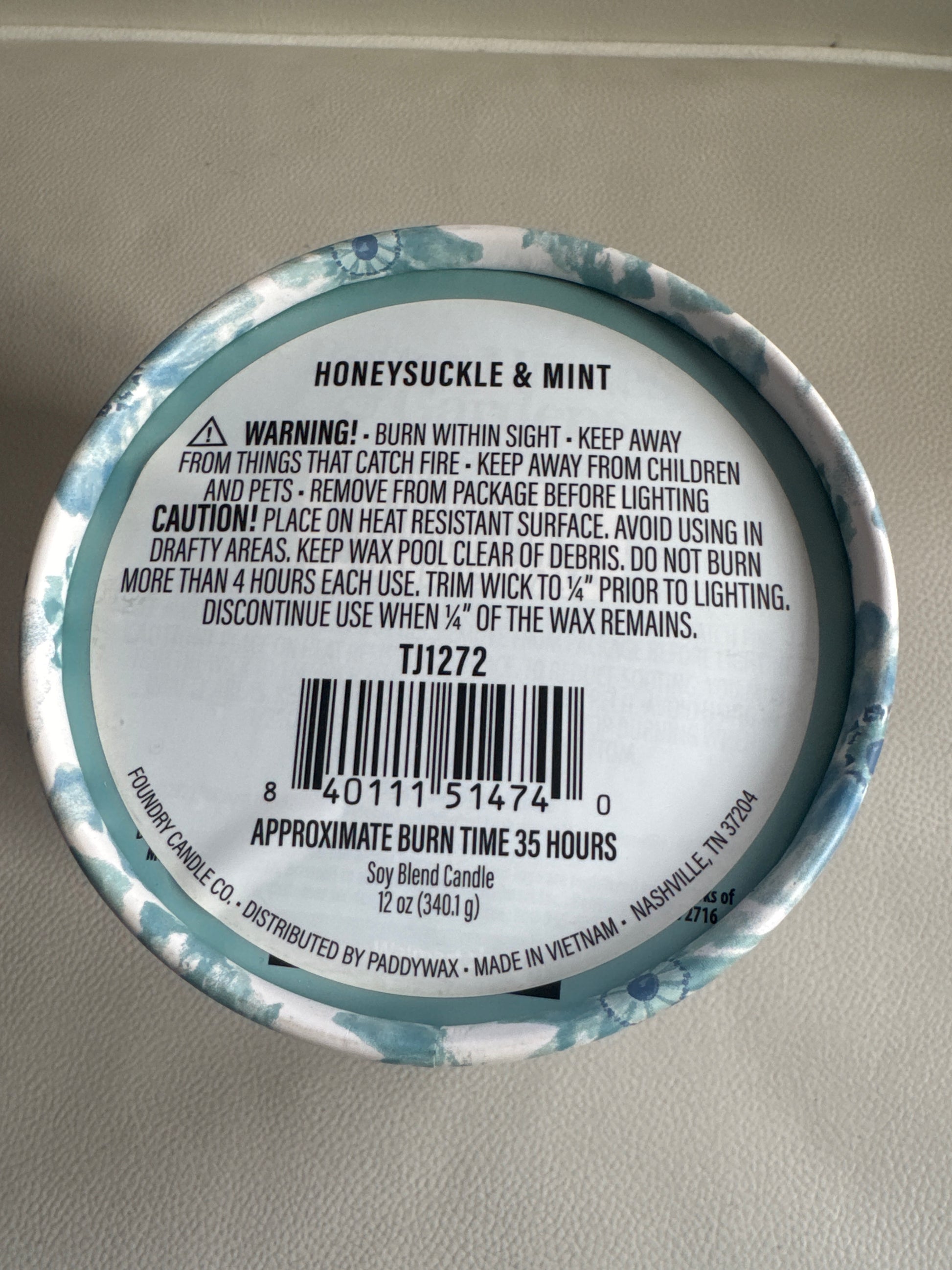 Honeysuckle & Mint Soy Blend Candle | 35-Hour Burn Time, Floral & Herbal Scent