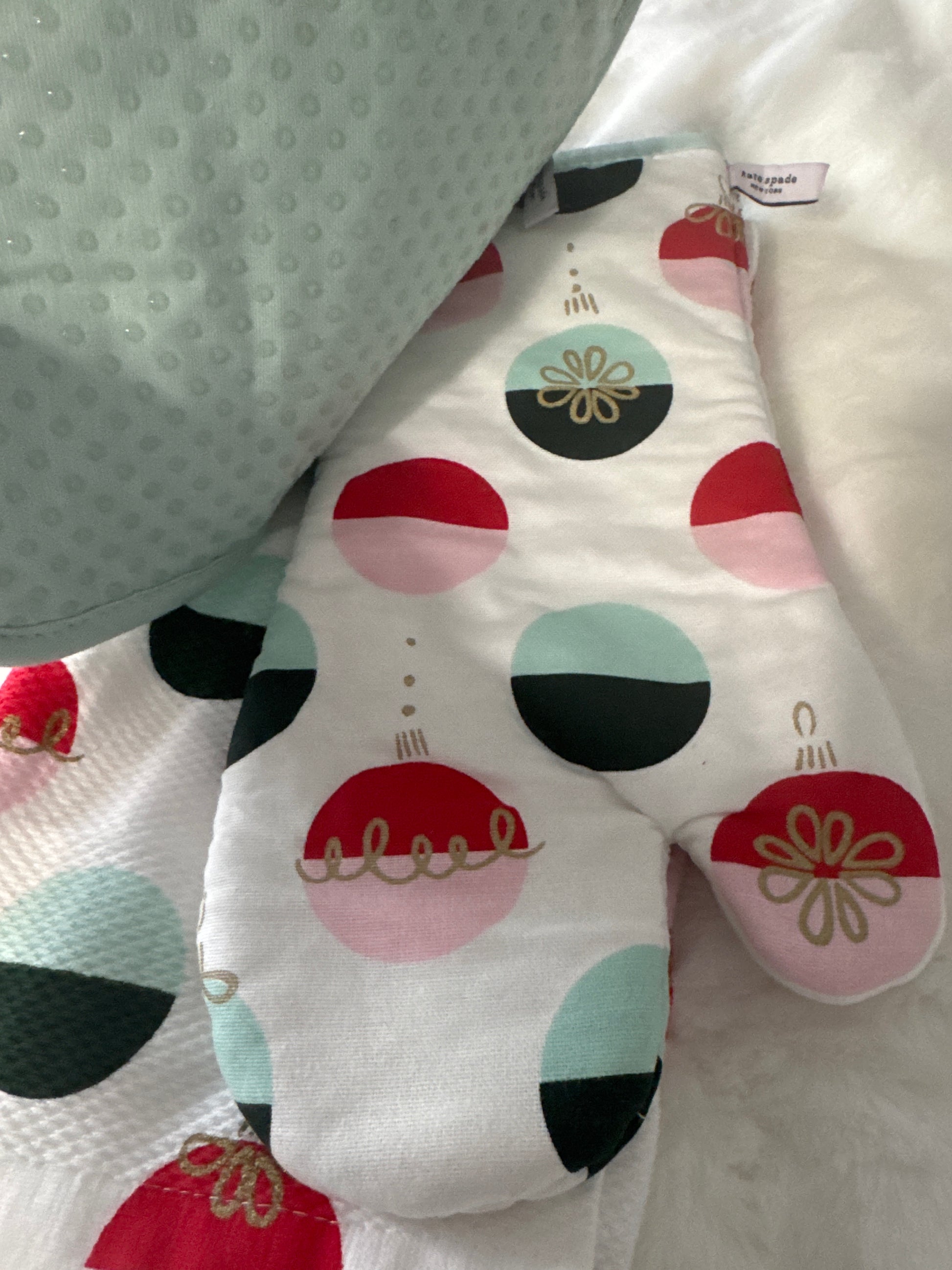 Material: 100% cotton with exclusive fill in mitt and pot holder