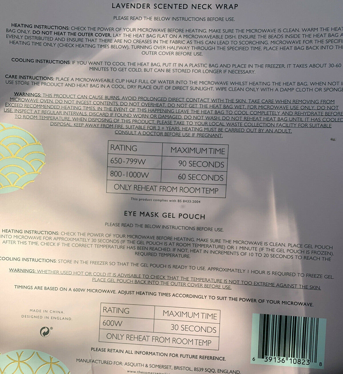 Neck Wrap & Fabric Eye Mask Asquith & Somerset Sleep Well Soothing
