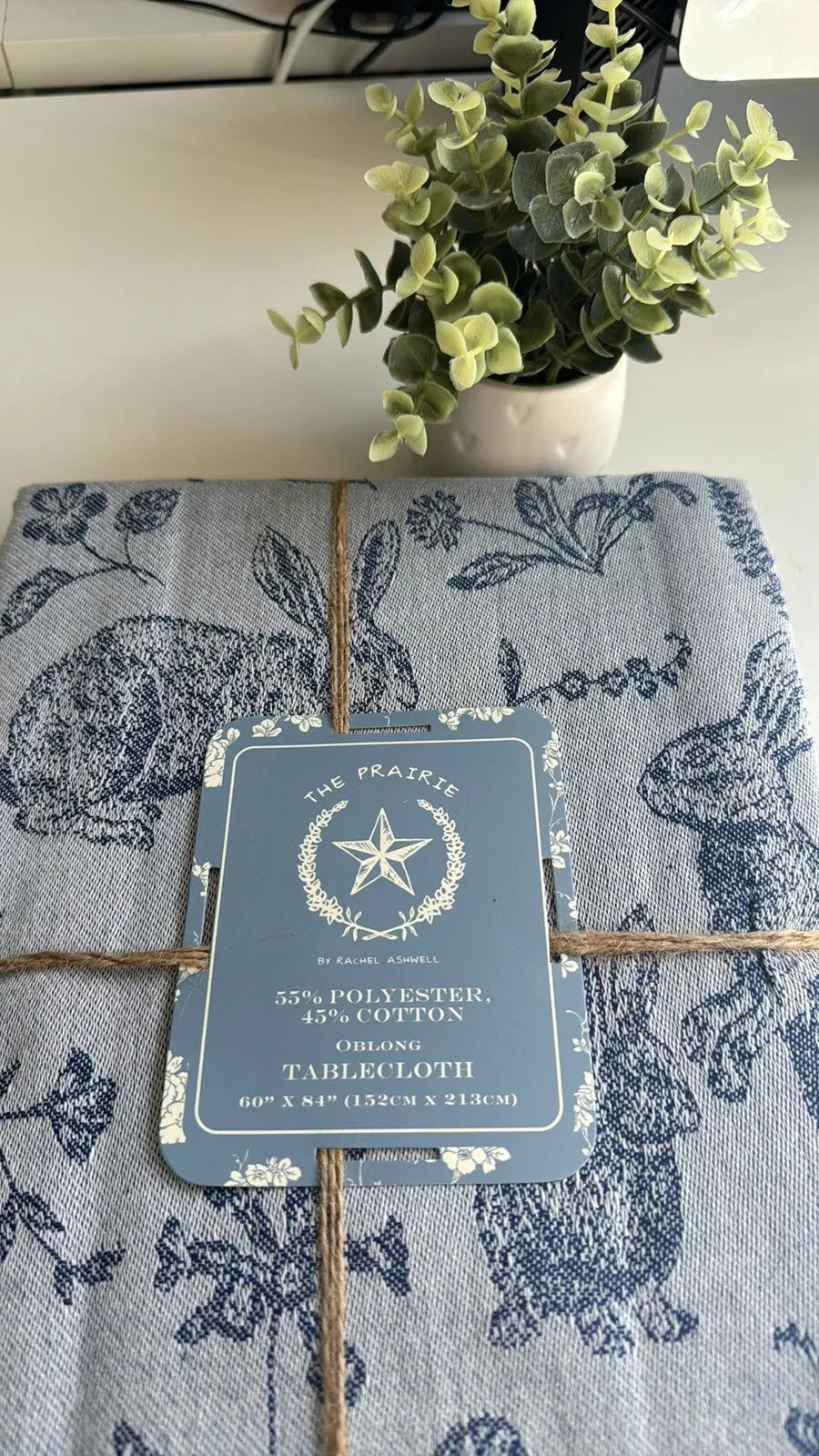 Tablecloth Rachel Ashwell Bunny Field Jacquard Oblong 60" x 84" | Blue, Cotton-Poly Blend