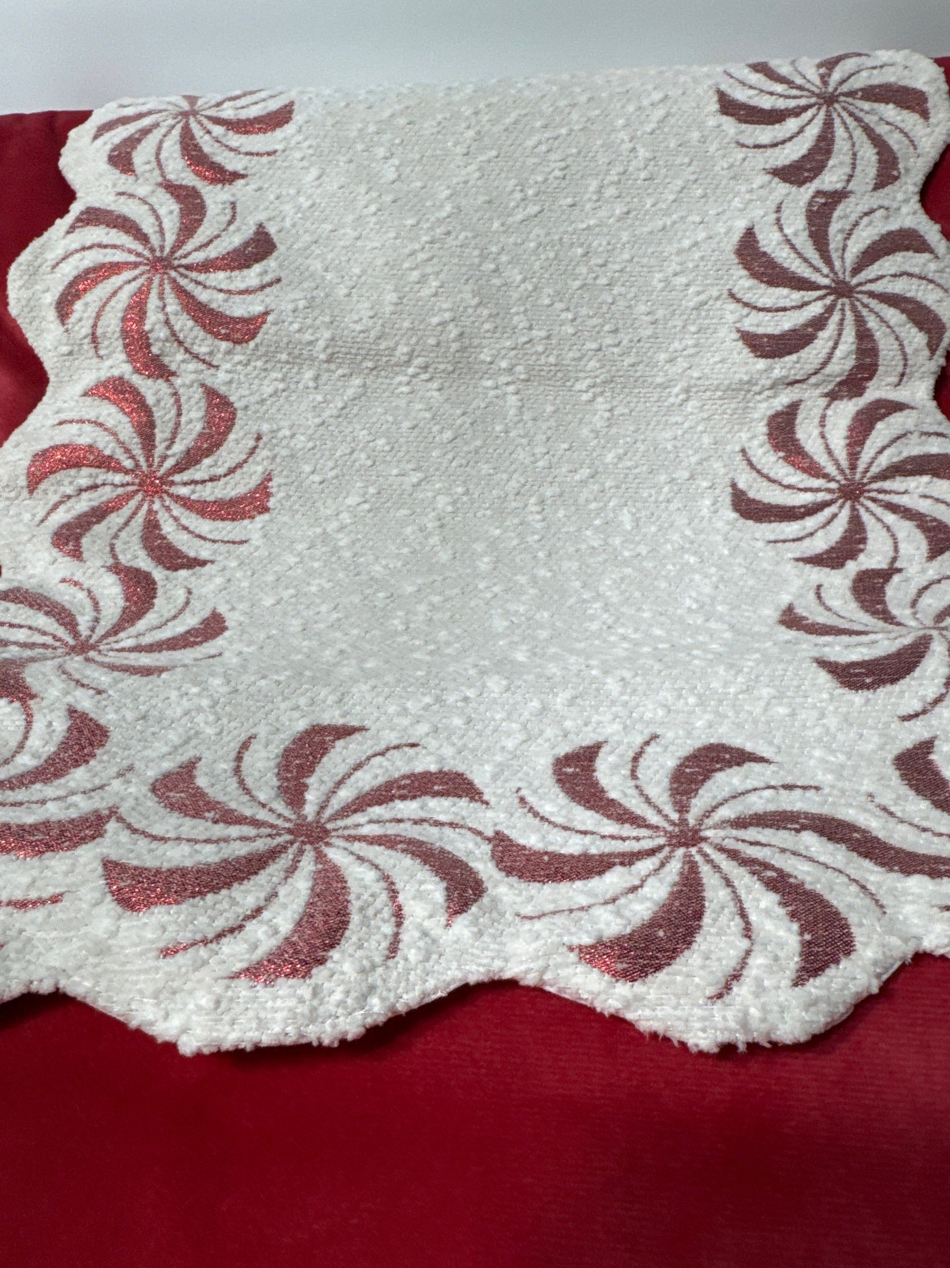 2pc Metallic Peppermint Border Table Runner Set – Holiday Décor with Scalloped Border & Metallic Accents