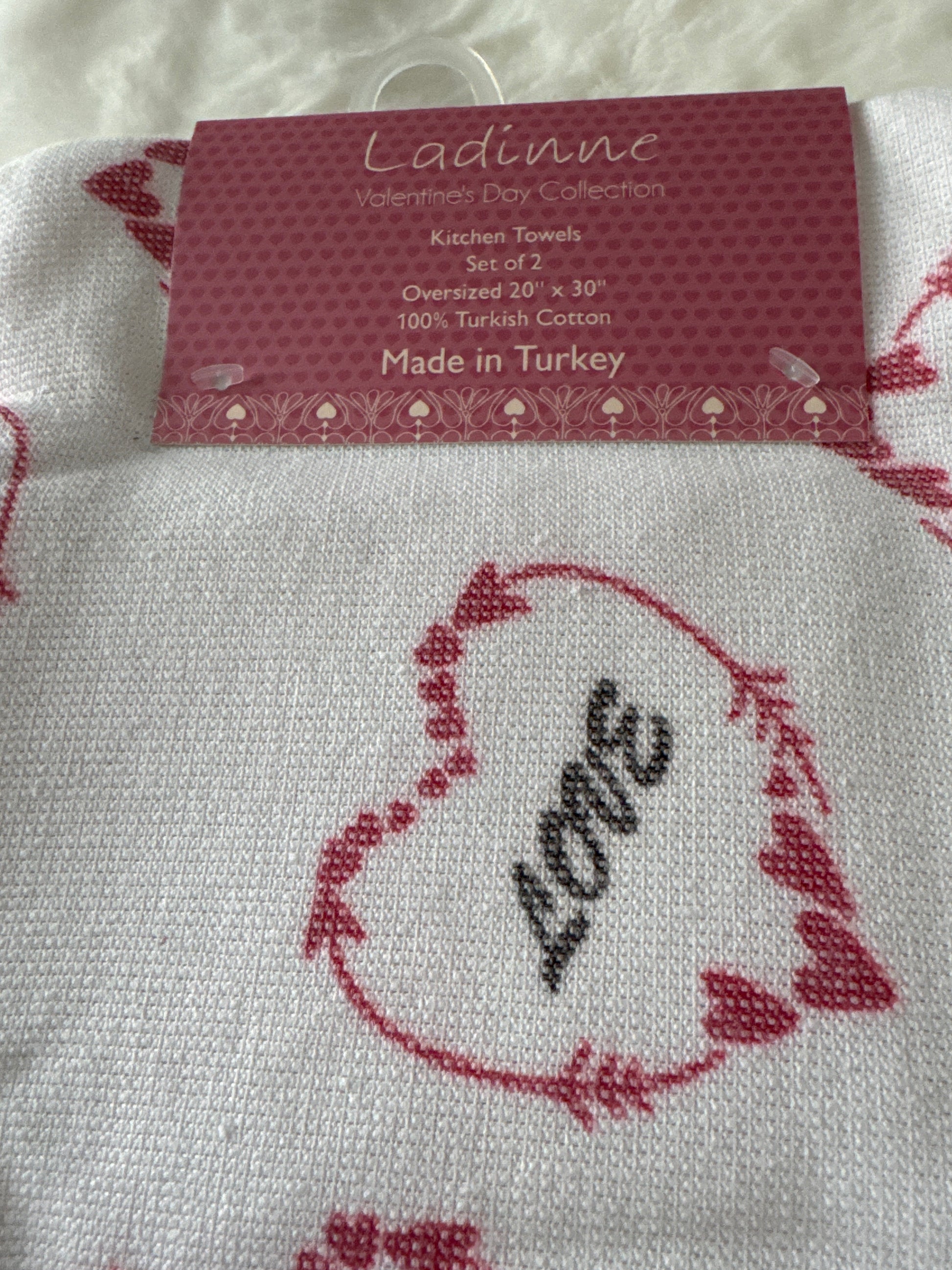 Set of 2 Kitchen Towels 100% Turkish cotton LADINNE oversees 20” x 30” Valentines Day Collection made in Turkey