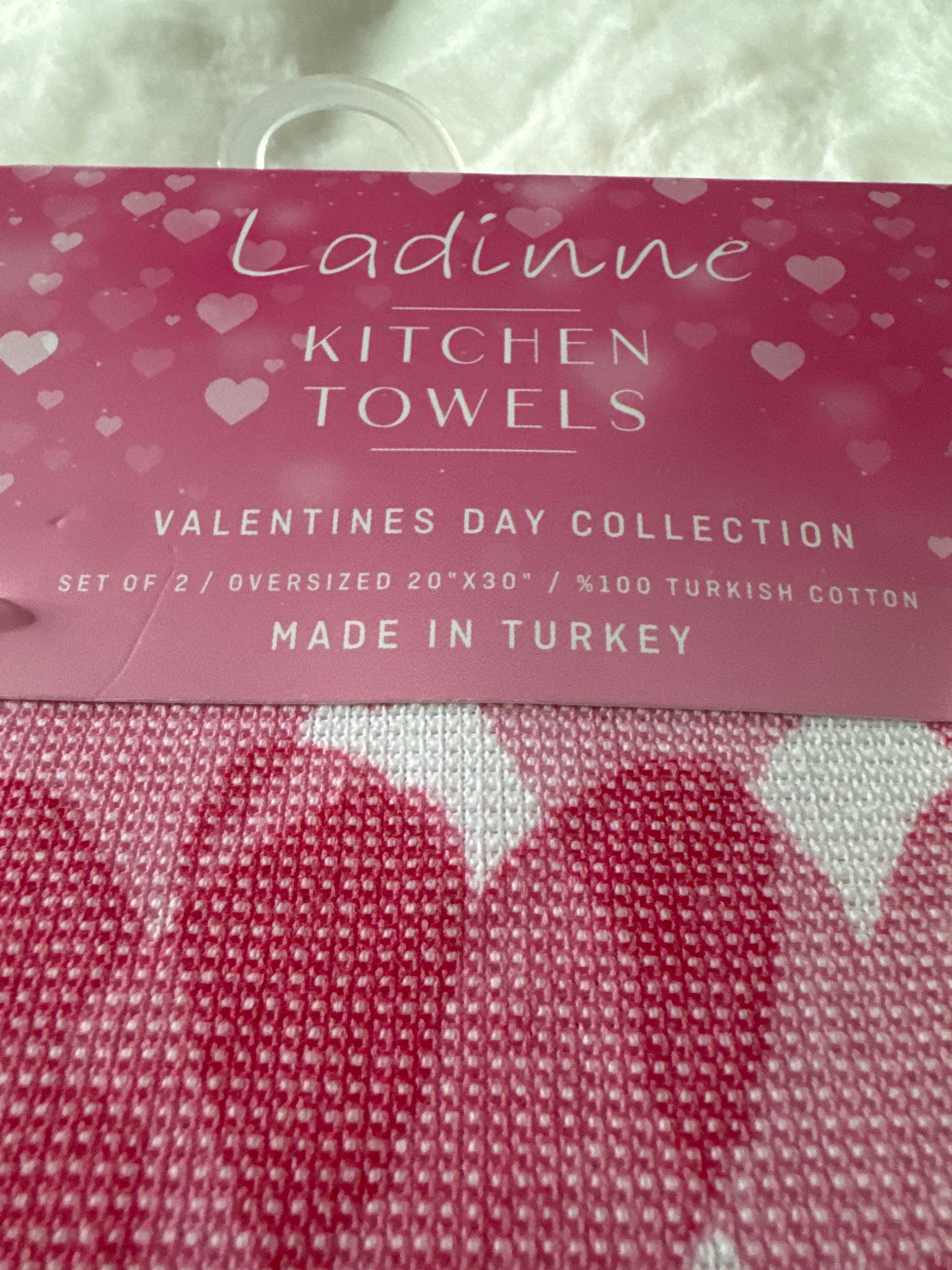 Elevate your kitchen decor with this luxurious set of 2 oversized kitchen towels from the Valentine's Day Collection by LADINNE. Crafted from 100% premium Turkish cotton, these towels offer superior softness, absorbency, and durability. Generously sized at 20" x 30", they're perfect for any kitchen task, from drying dishes to stylishly enhancing your space. Beautifully designed and made in Turkey, these towels make an ideal gift or a charming addition to your home decor.