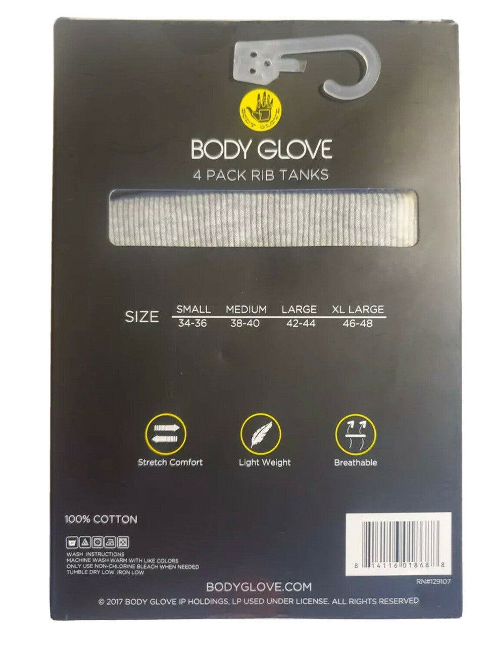 Body Glove Tank T-Shirts White Gray Black 4 Pack Stretch Cotton Men’s Large