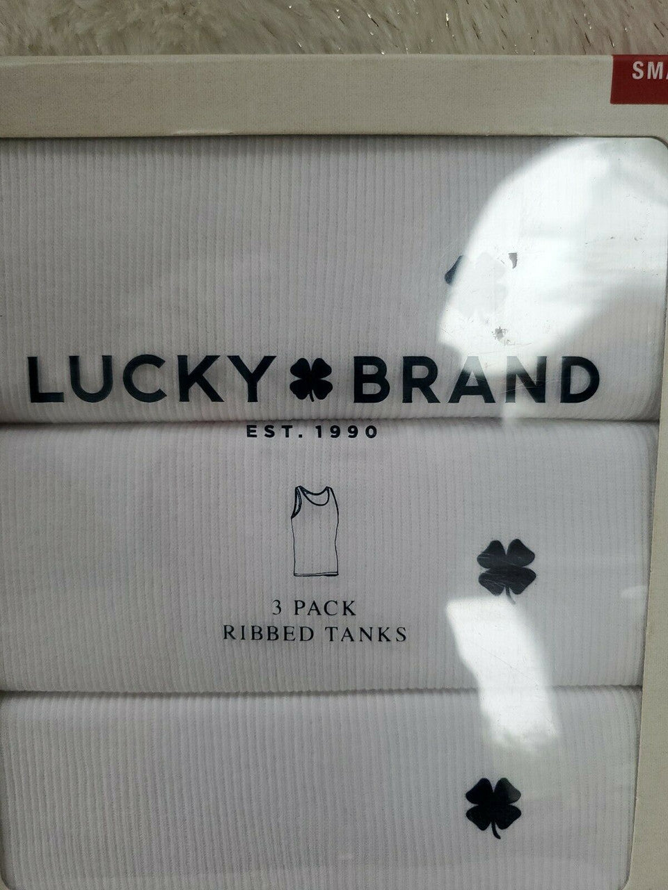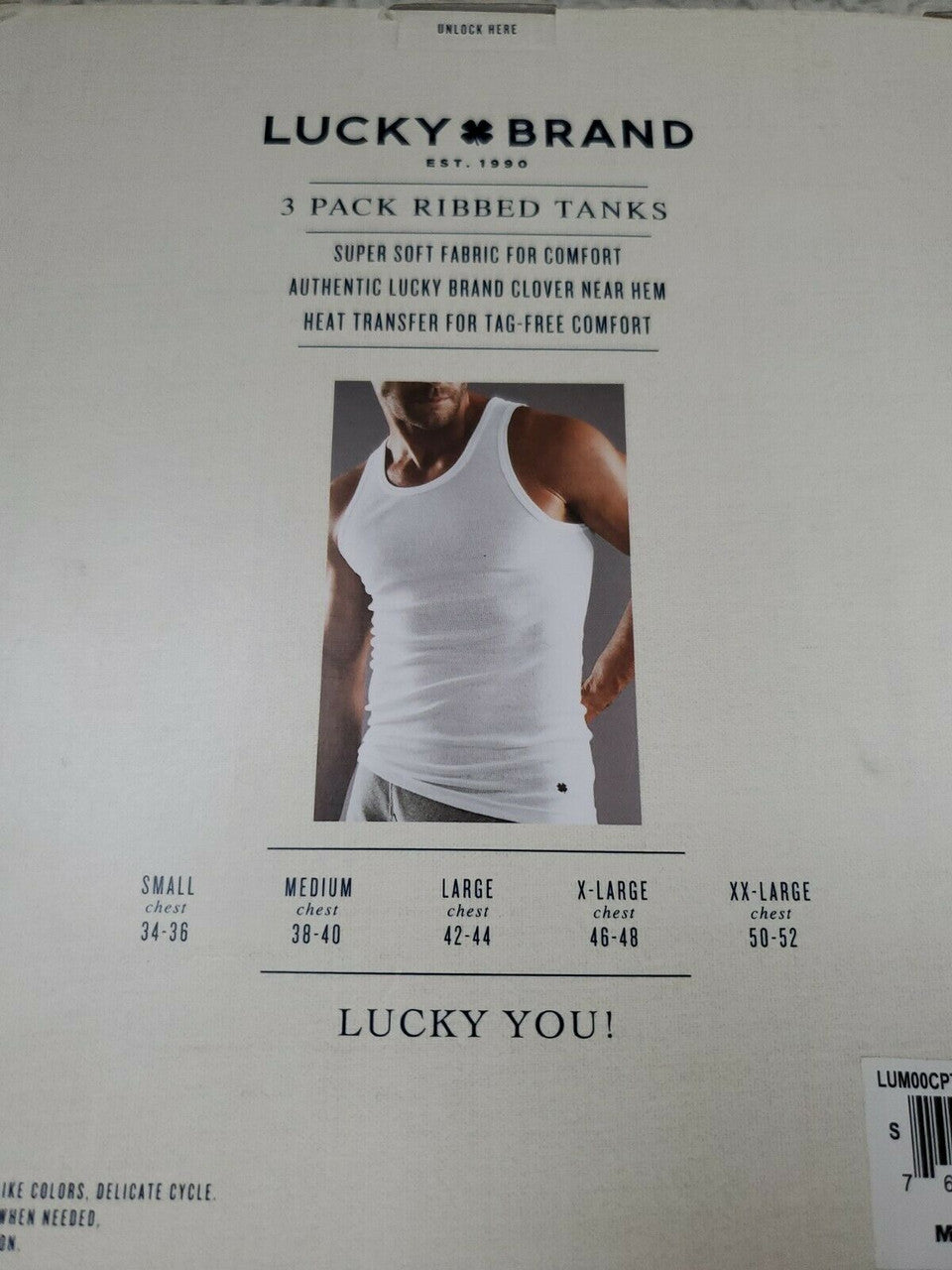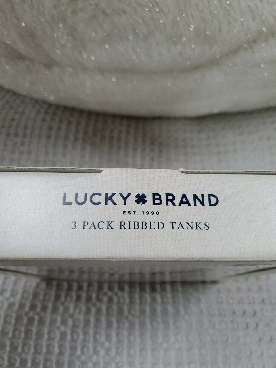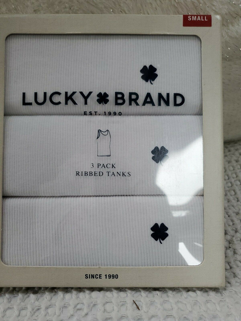 LUCKY BRAND Men's 3 Pack 100% Cotton Ribbed White Tanks Size S