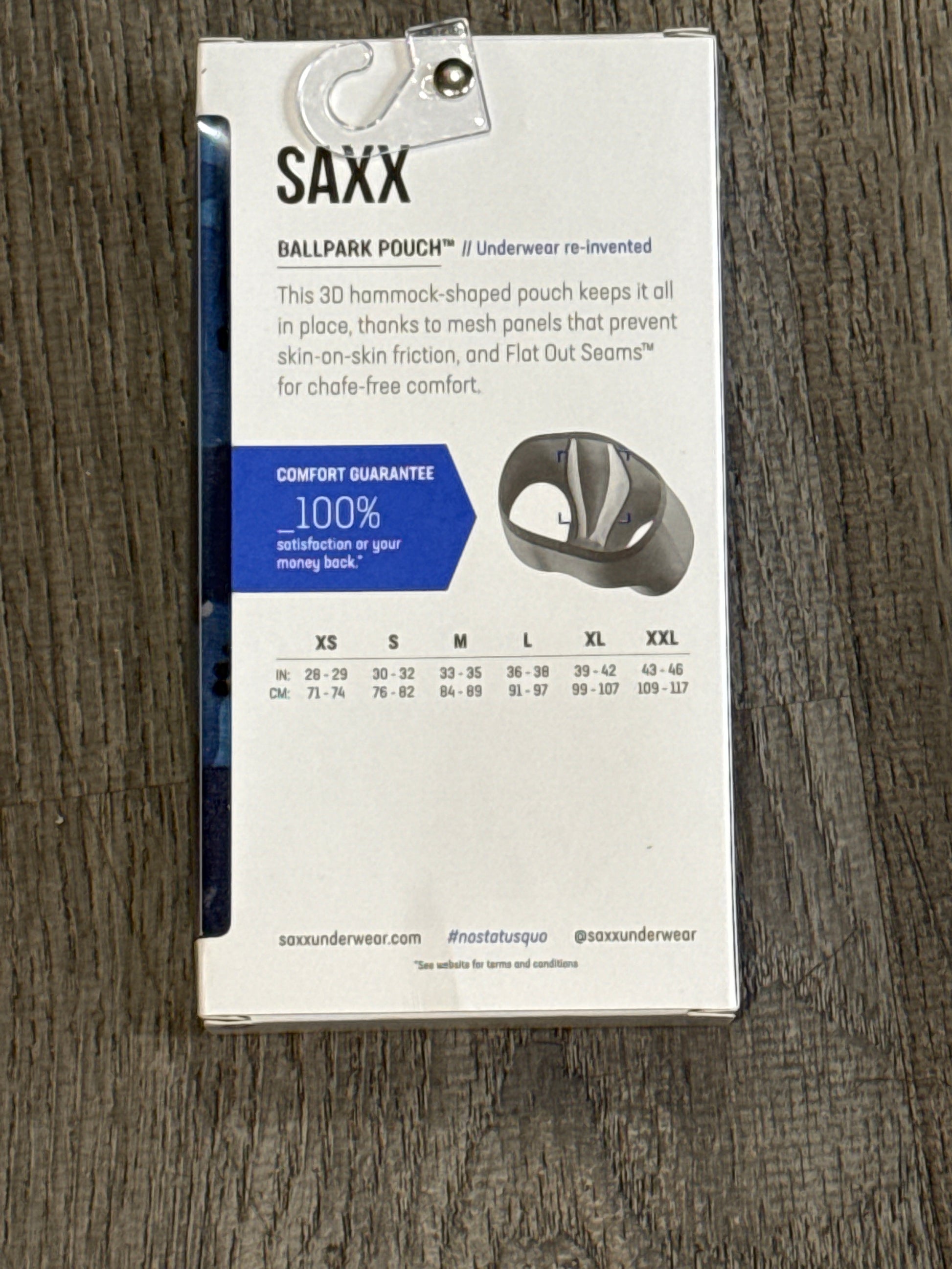 Experience unmatched everyday comfort with this men’s slim-fit boxer brief in an eye-catching blue camo print. Made by SAXX, these boxer briefs feature the innovative BallPark Pouch™ – a 3D hammock-shaped pouch that reduces friction and provides all-day support. Crafted from soft viscose fabric, they offer excellent moisture-wicking performance and a tagless design with Flat Out Seams™ for chafe-free wear. This is a single pair (not a multi-pack).