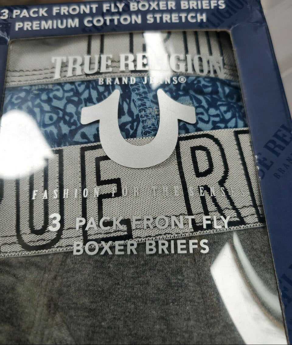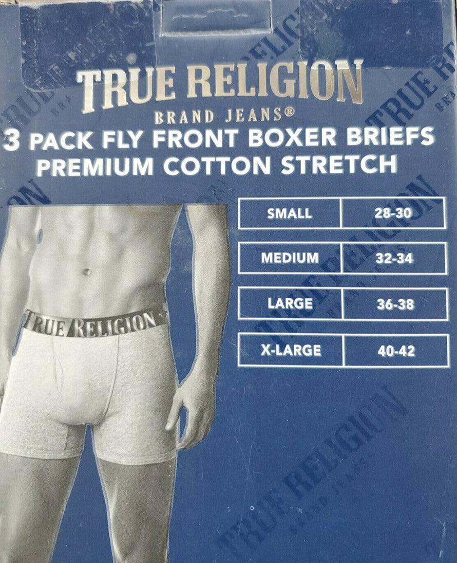 TRUE RELIGION Men Premium Cotton Stretch Boxer Briefs – 3-Pack, Size Small