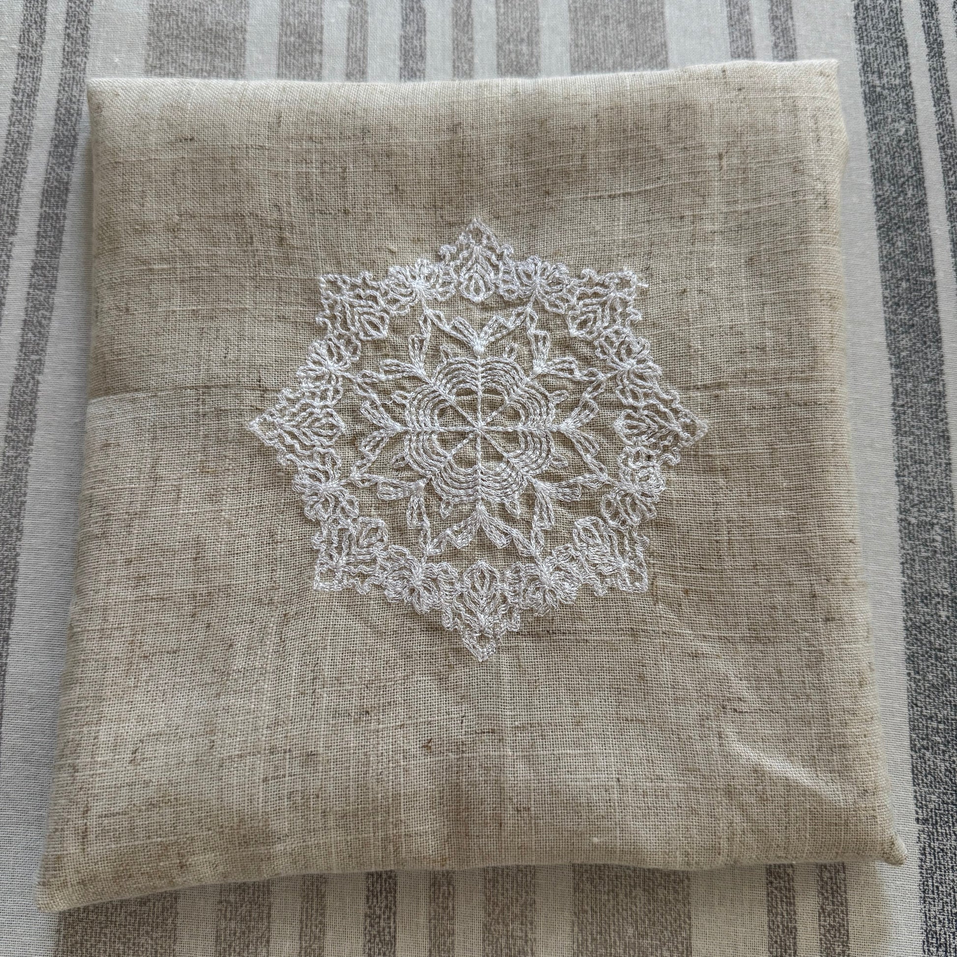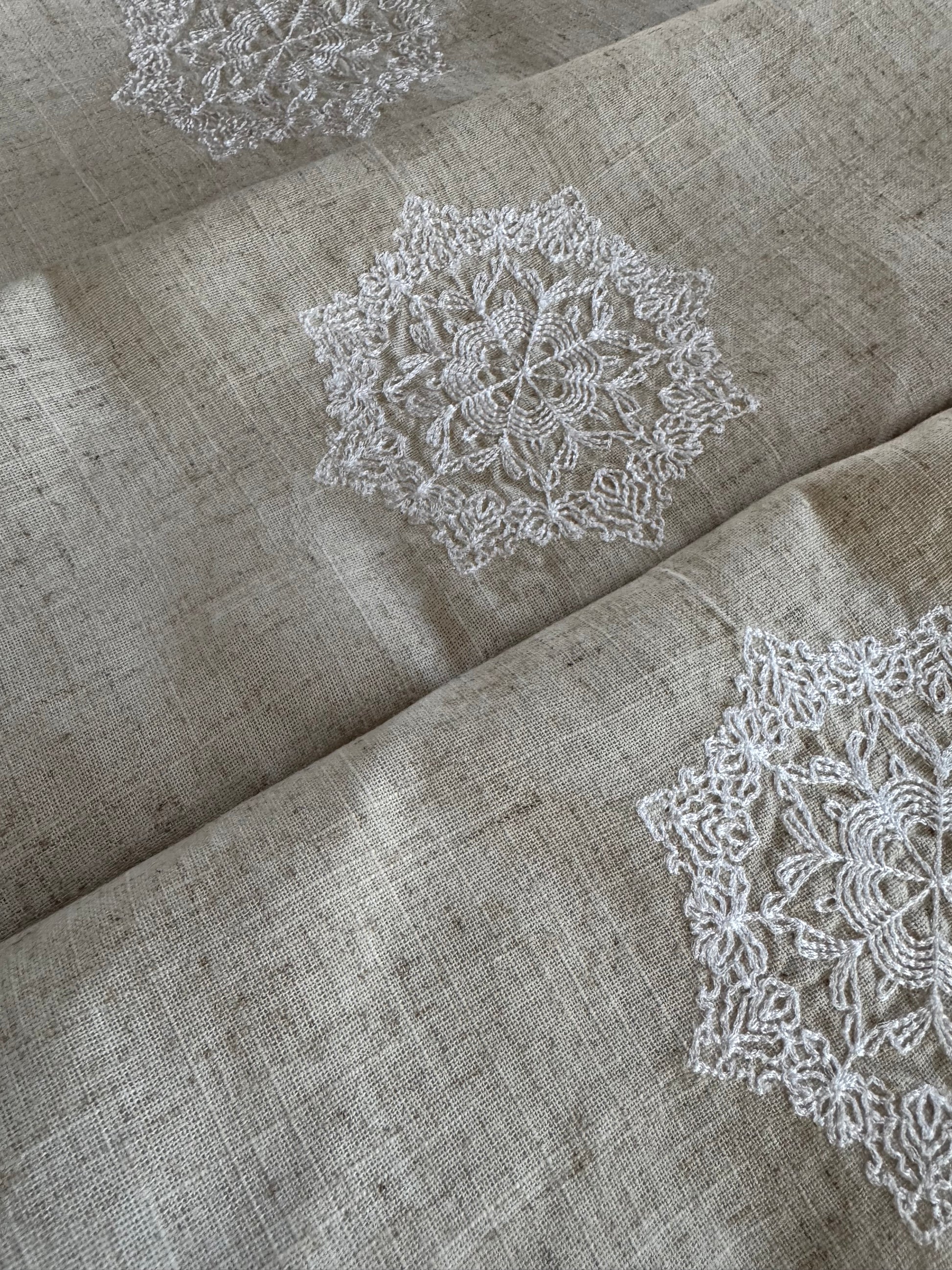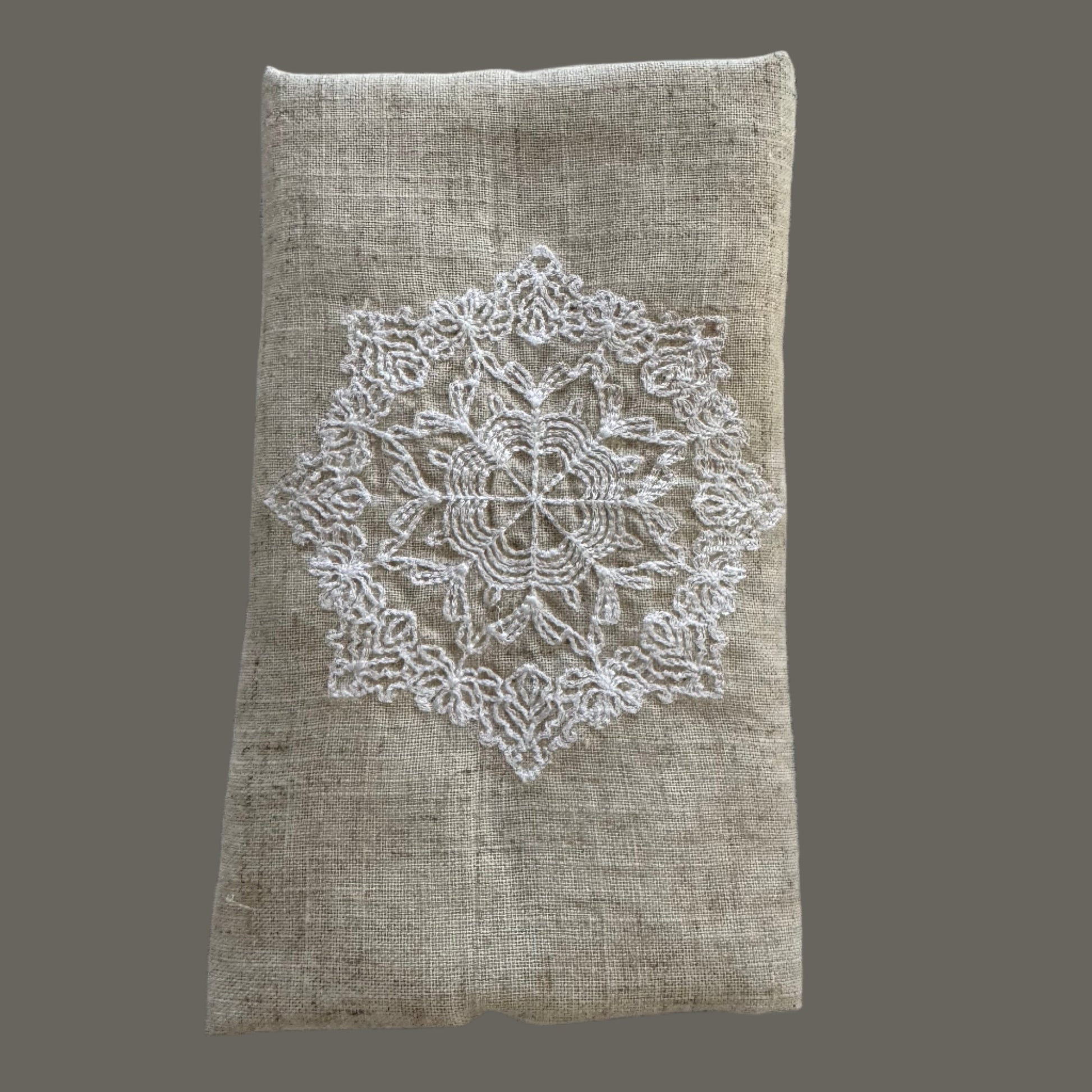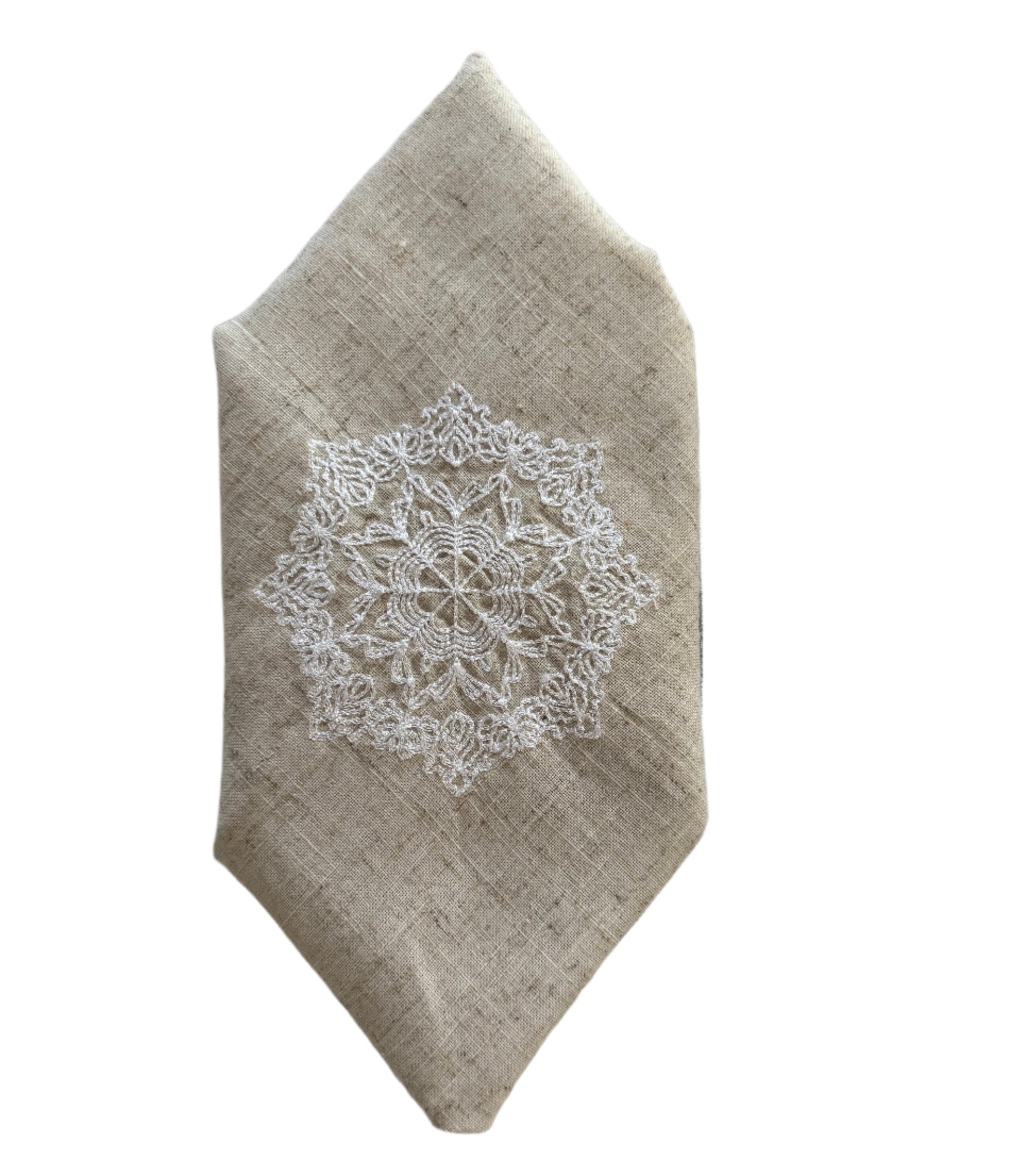 Elevate your dining experience with this exquisite set of 4 embroidered dinner napkins, designed to combine elegance, durability, and natural charm. Crafted from a luxurious blend of 55% cotton and 45% linen, these napkins measure 17" x 17" and are perfect for both casual meals and formal gatherings.