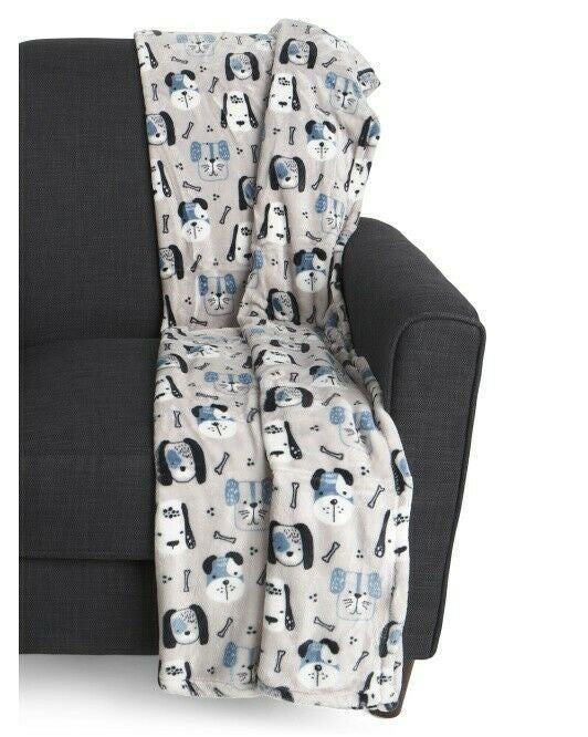 THRO Waddon Dog Face Flannel Fleece Rolled Pet Throw Marlo Lorenz 50" x 60"