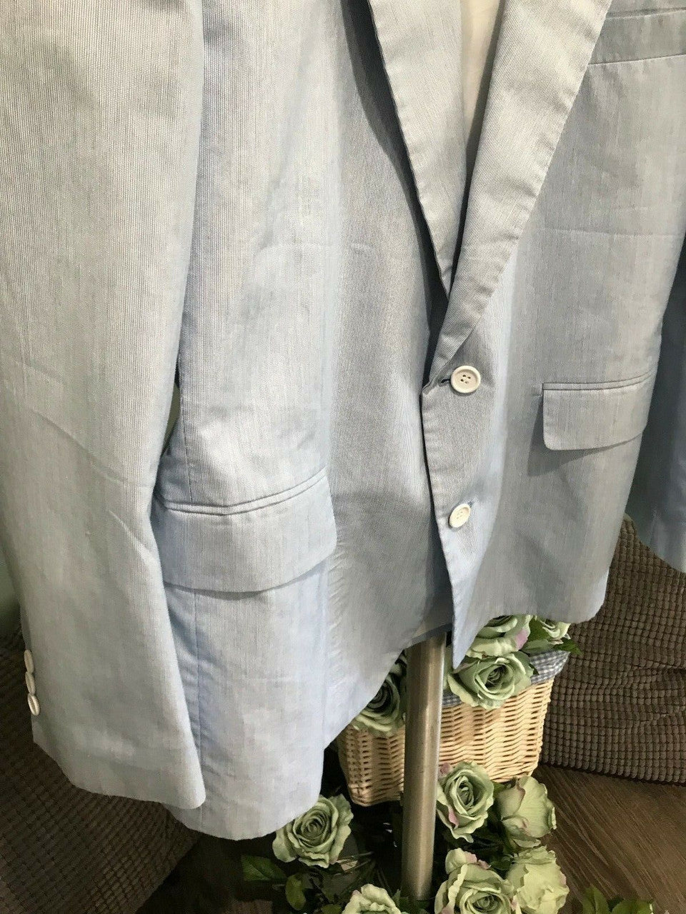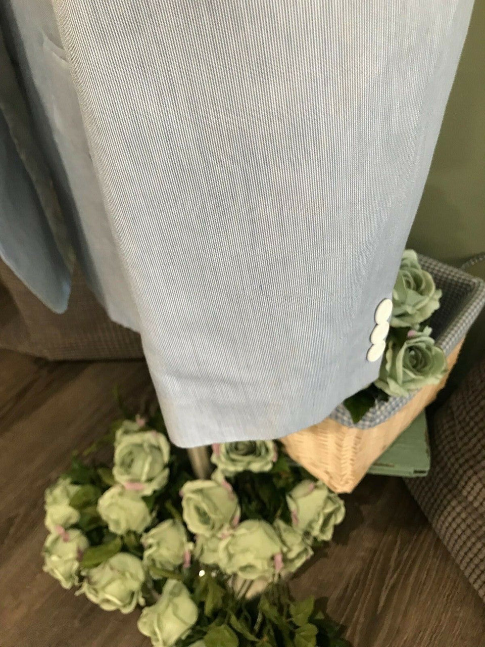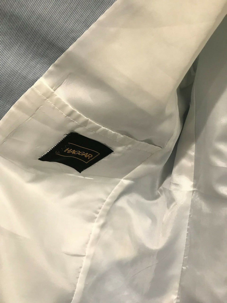Vintage Haggar Mens Classic Fit 2 Button Light Blue stripe Suit Jacket 44S