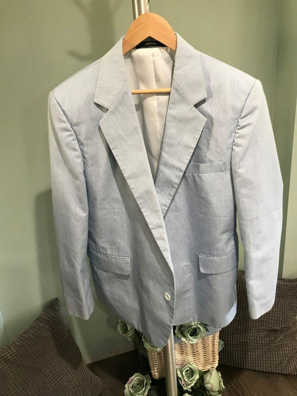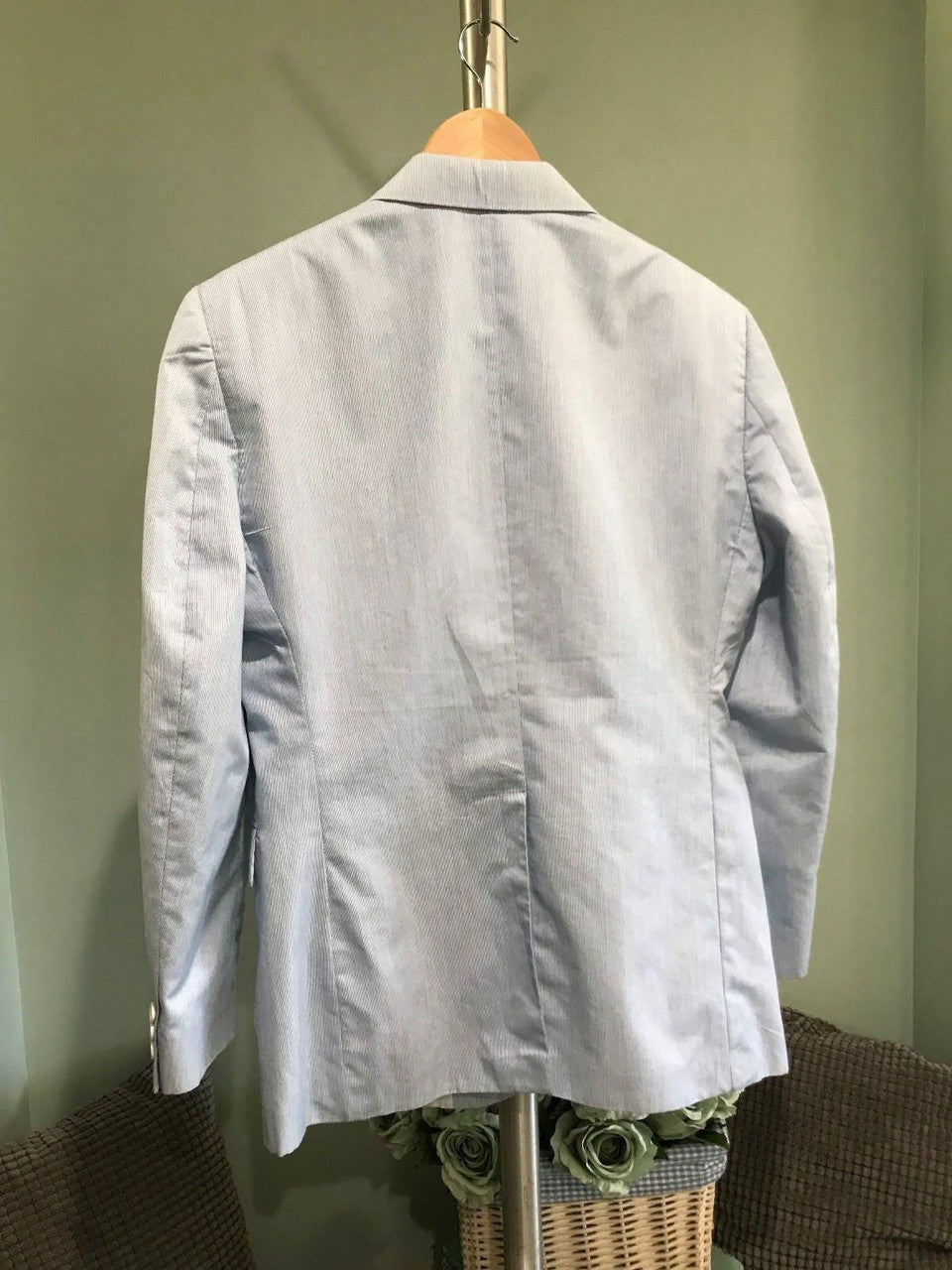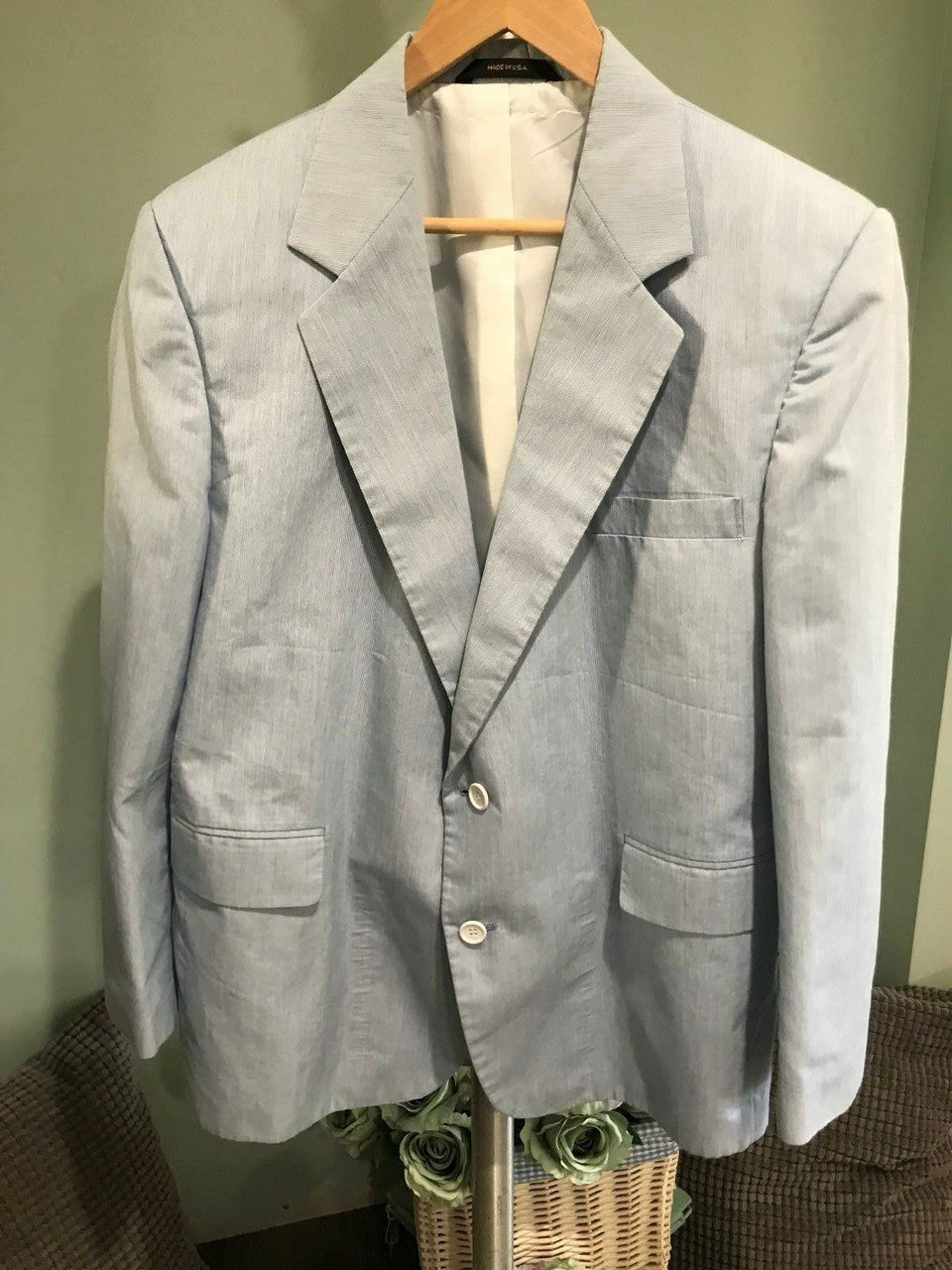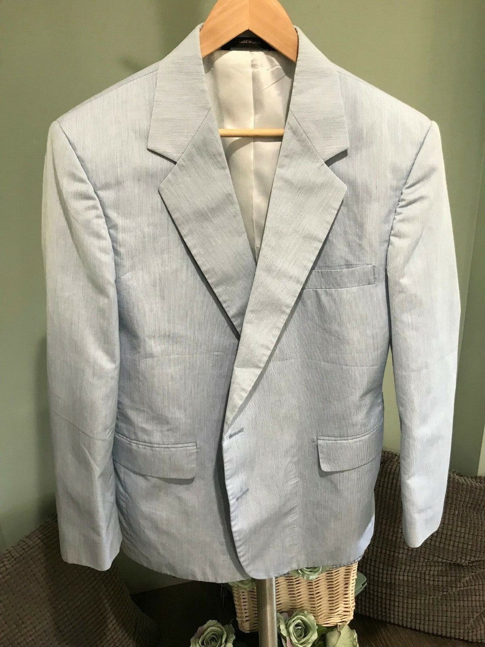 Vintage Haggar Mens Classic Fit 2 Button Light Blue stripe Suit Jacket 44S