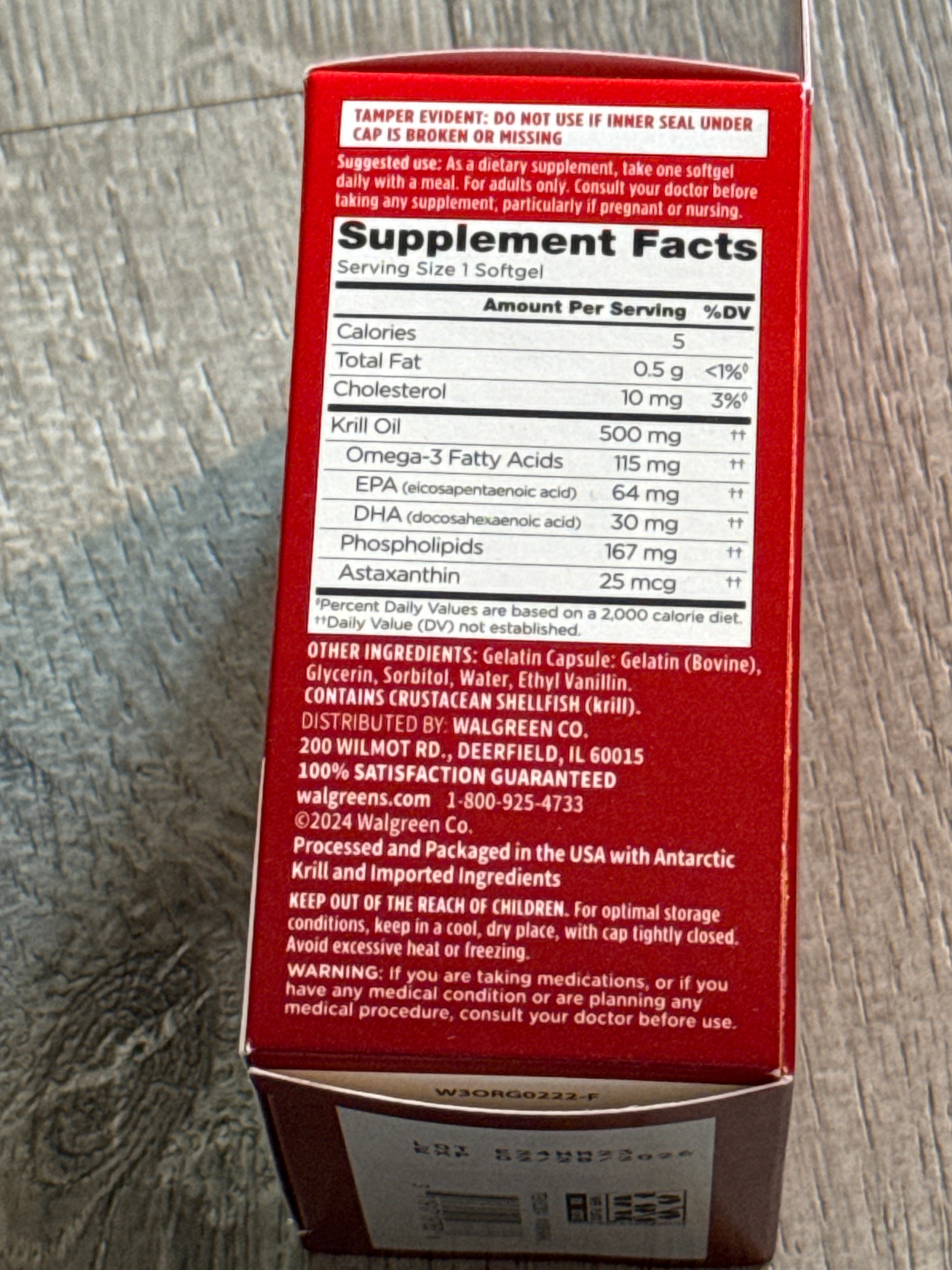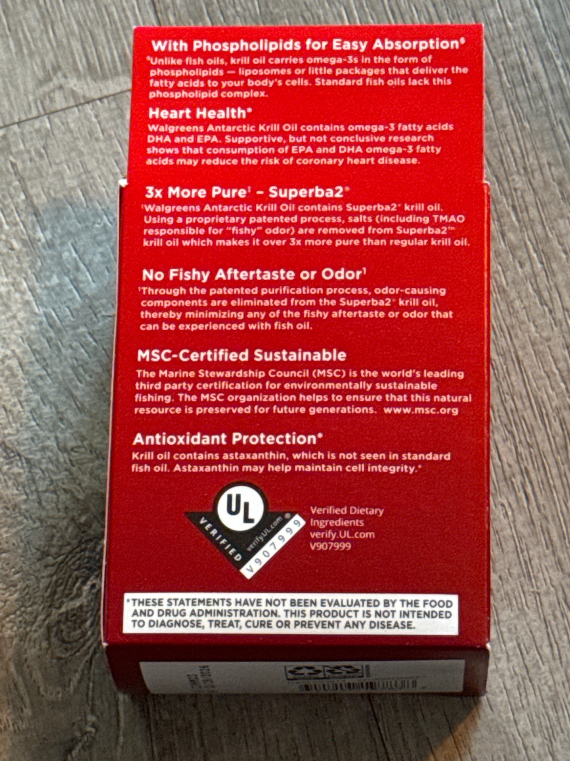 Walgreens Antarctic Krill Oil Ex Strength 500 mg, 40 Softgels Heart Health Small exp 02/2026