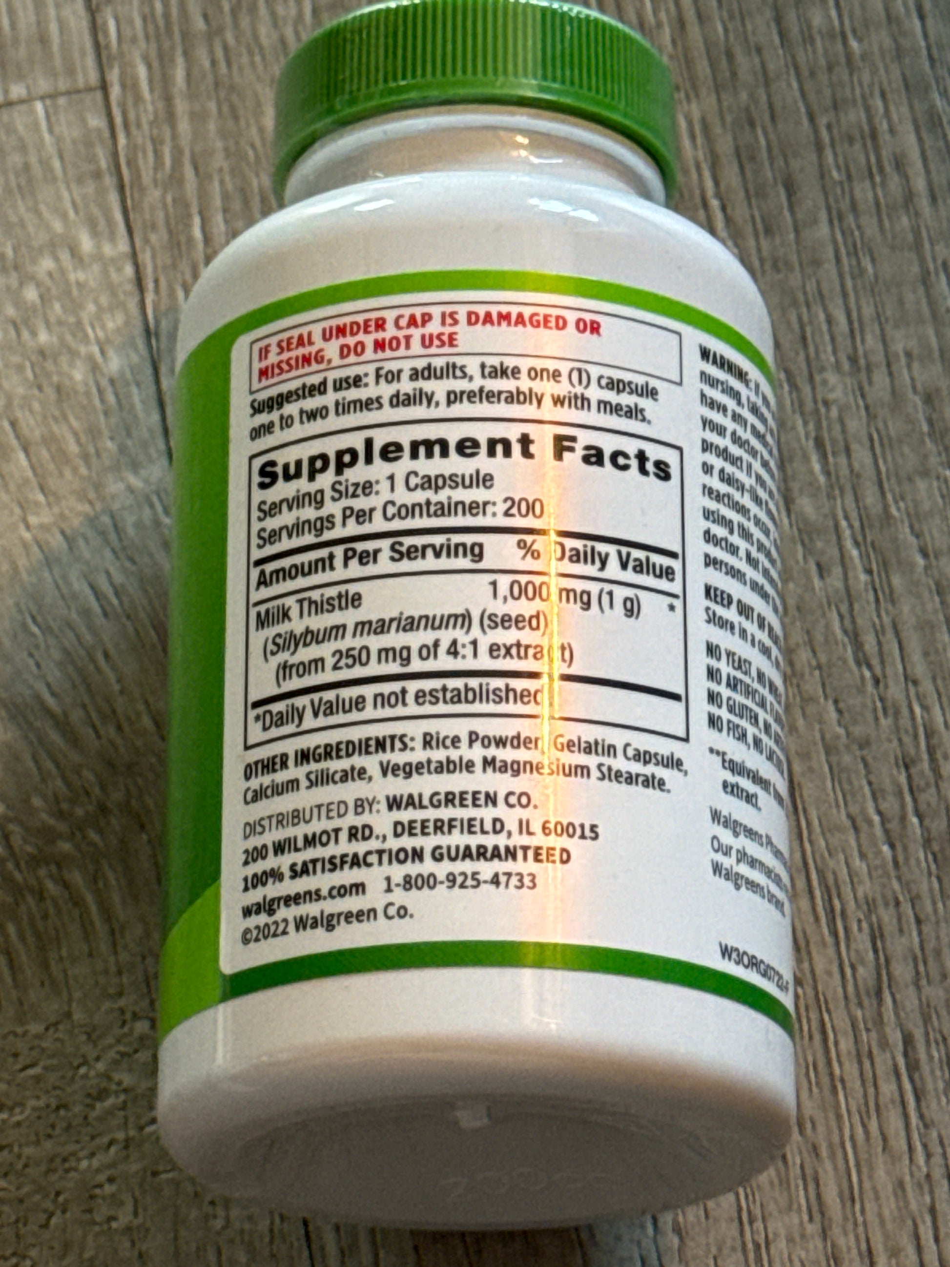 Walgreens Free+Pure Milk Thistle Extract 1000 Mg, 200 Capsules exp 04/2027