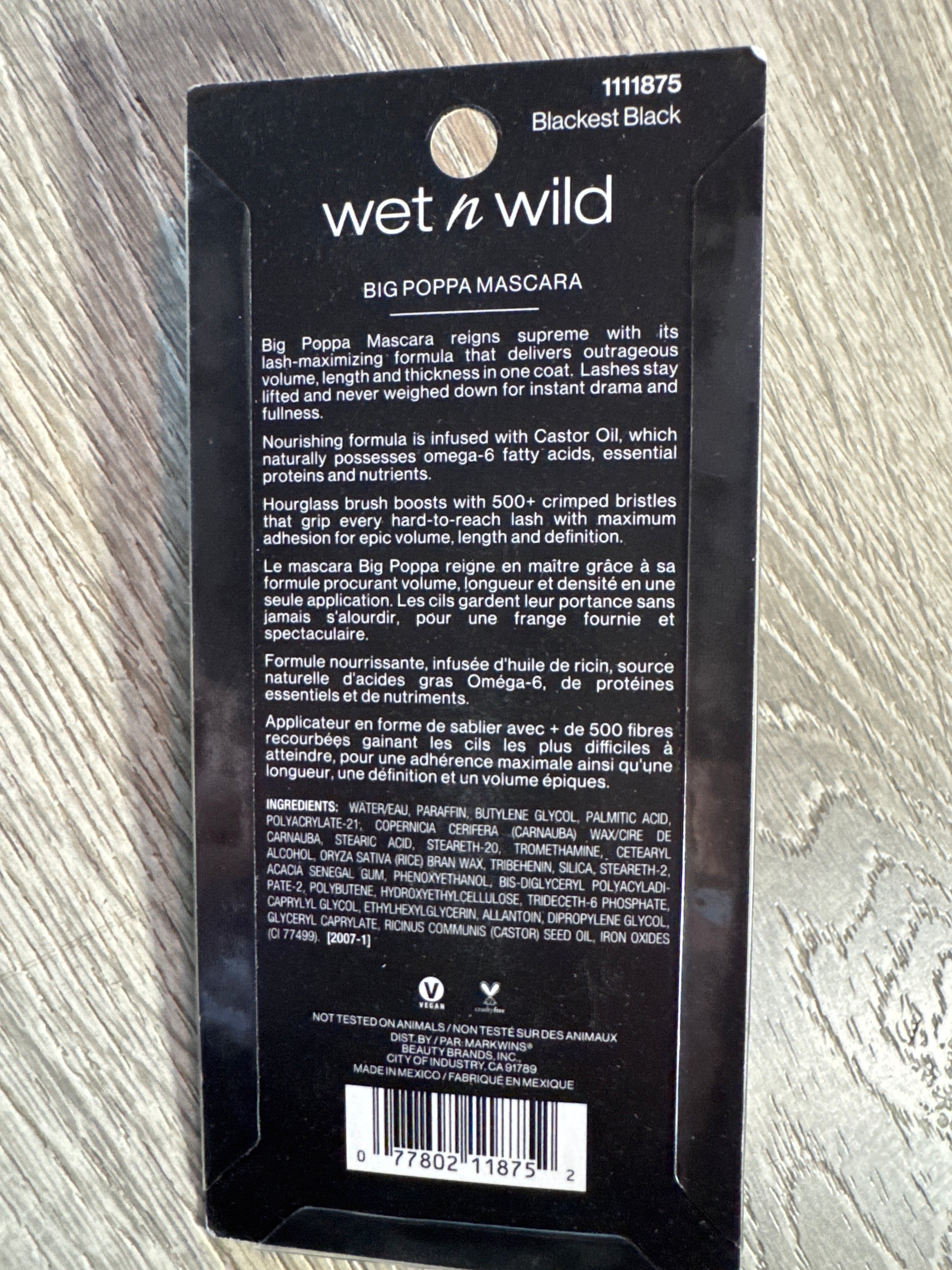 This Wet n Wild BIG POPPA Mascara adds both volume and length to your lashes, giving you a bold and dramatic look. Its BLACKEST BLACK shade intensifies your eyes for a striking appearance. Get up to 80% more length and 10 times the volume with this mascara, perfect for any occasion.